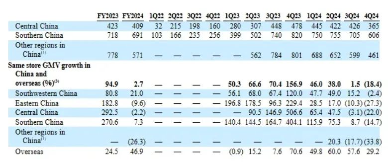 但從2024年一季度開始,霸王茶姬有點(diǎn)跟不上自己開店的速度了。這一季度開始,霸王茶姬的同店成交額首次下滑,來到四季度,這一數(shù)字更是同比大幅下滑18.4%,只剩下45.6萬元。