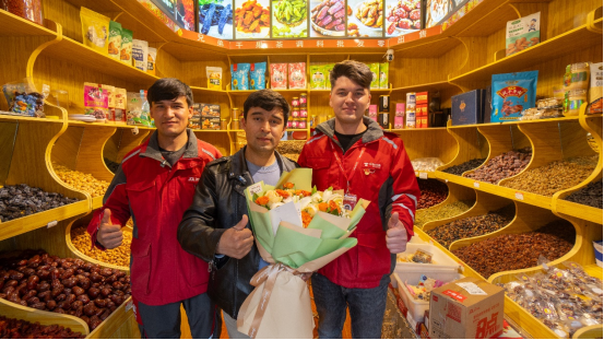 3月30日下午4點,喀什古城的干果店老板伊斯馬伊力收到了京東快遞員庫爾班·努爾送來的快遞——他早上在京東APP自營店鋪下單了一套護膚品,這是他為愛人準備的禮物。更讓他意外的是,隨包裹而來的還有一束鮮花和一封京東物流的感謝信:“尊敬的伊斯馬伊力先生:您好!今天是京東物流喀什倉試運營的第一天,您是我們的首單顧客,感謝您對我們的信任與支持,讓我們有機會為喀什古城增添一份京彩速度!