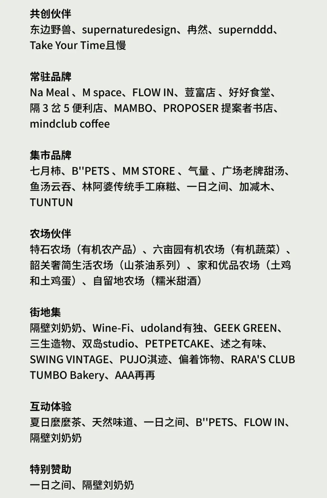 比如開業(yè)的時候舉辦的“街集地”市集活動,引入了AAA再再、udoland有獨、TUMBO Bakery、述之有味、PUJO淇跡、RARA’S CLUB等13個品牌,形成為期5天的品牌快閃市集。
