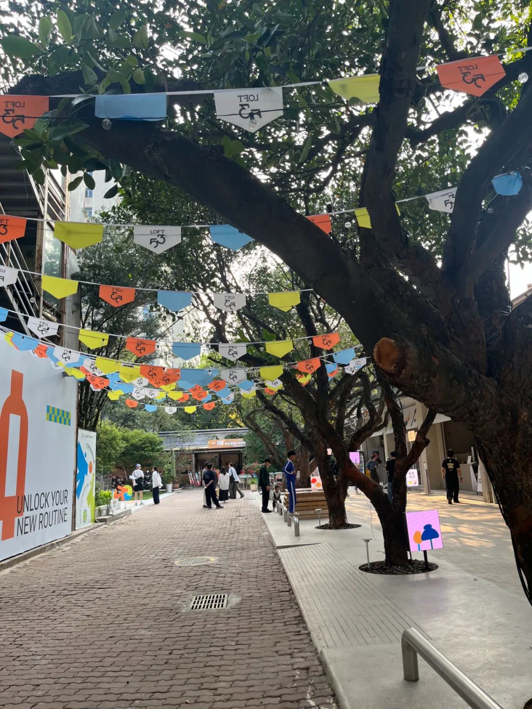 剛剛開業(yè)的LOFT 53還在舉辦“街集地”市集活動,在道路兩側(cè)引入了13家市集品牌,來來往往的游客在市集里穿行而過。