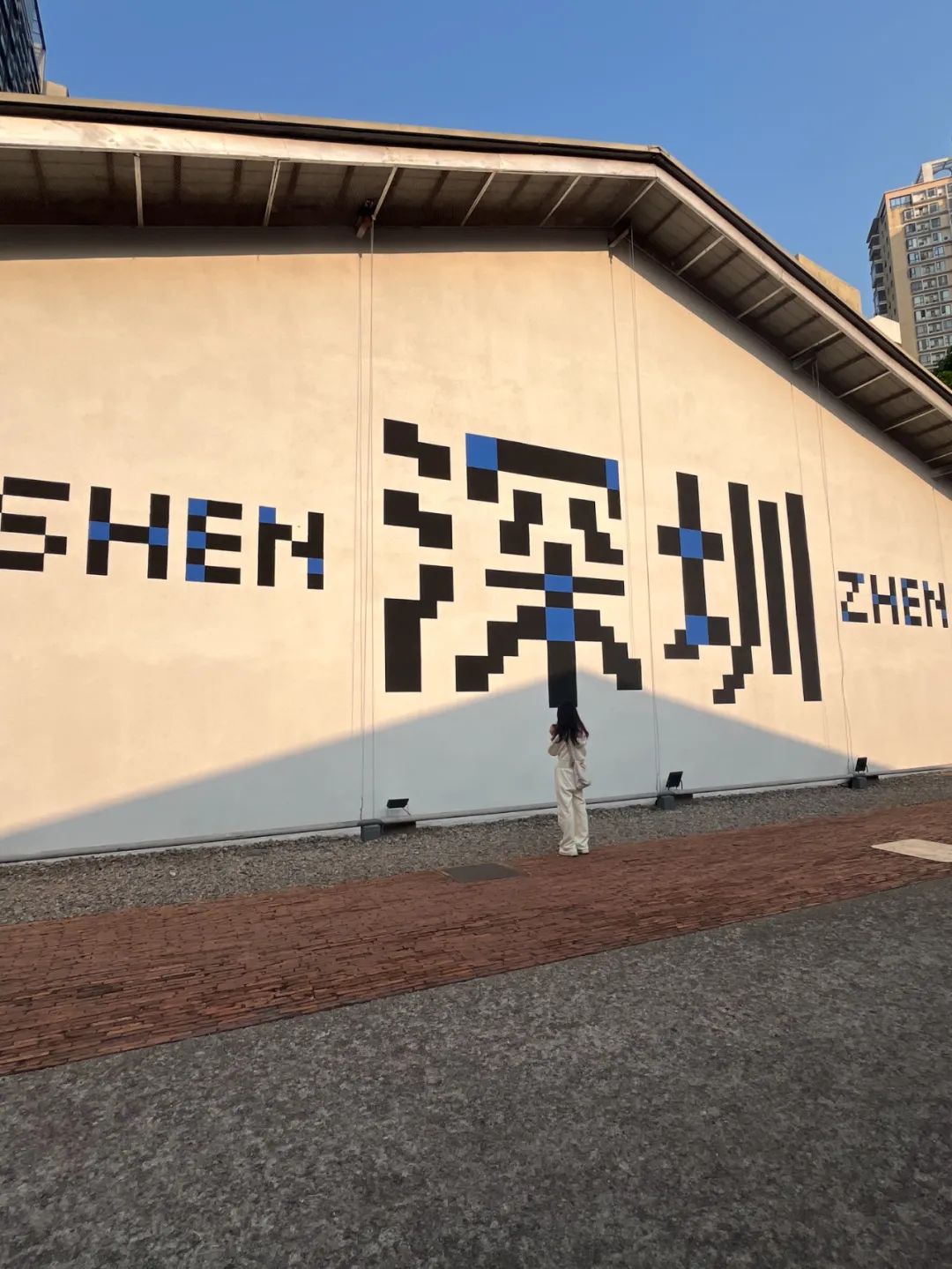 周五下午已經(jīng)能看到華僑城創(chuàng)意文化園的主入口人來人往,有不少人對著深圳墻在拍照打卡。