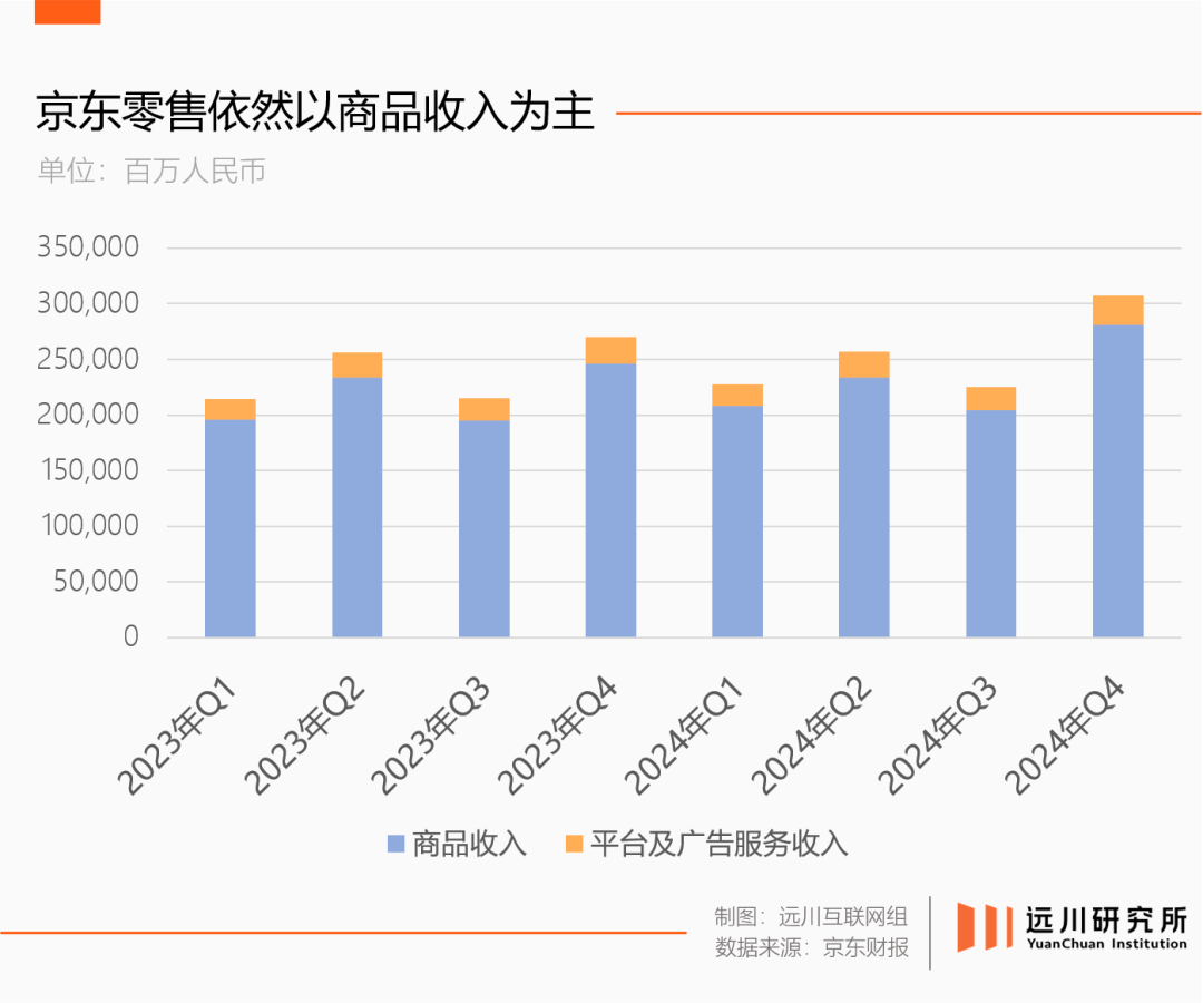 去年四季度,國(guó)補(bǔ)影響完全釋放,落后許久的商品收入增速成功反超服務(wù)收入。