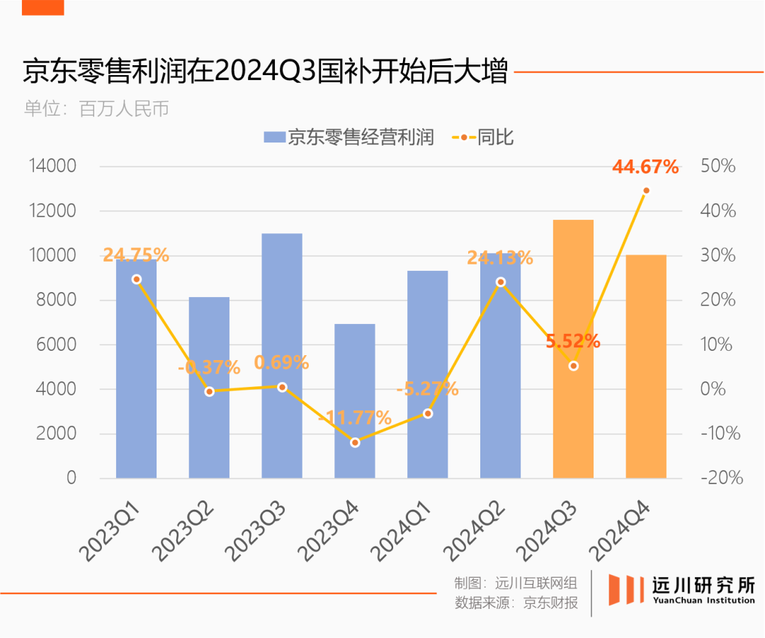 兄弟們?yōu)榇藠^斗兩年多,最終還是一場(chǎng)國(guó)補(bǔ)讓京東業(yè)績(jī)回春:2024年四季度,京東營(yíng)收同比增長(zhǎng)13.4%,自2022年三季度以來(lái)再次重回雙位數(shù)增長(zhǎng)。
