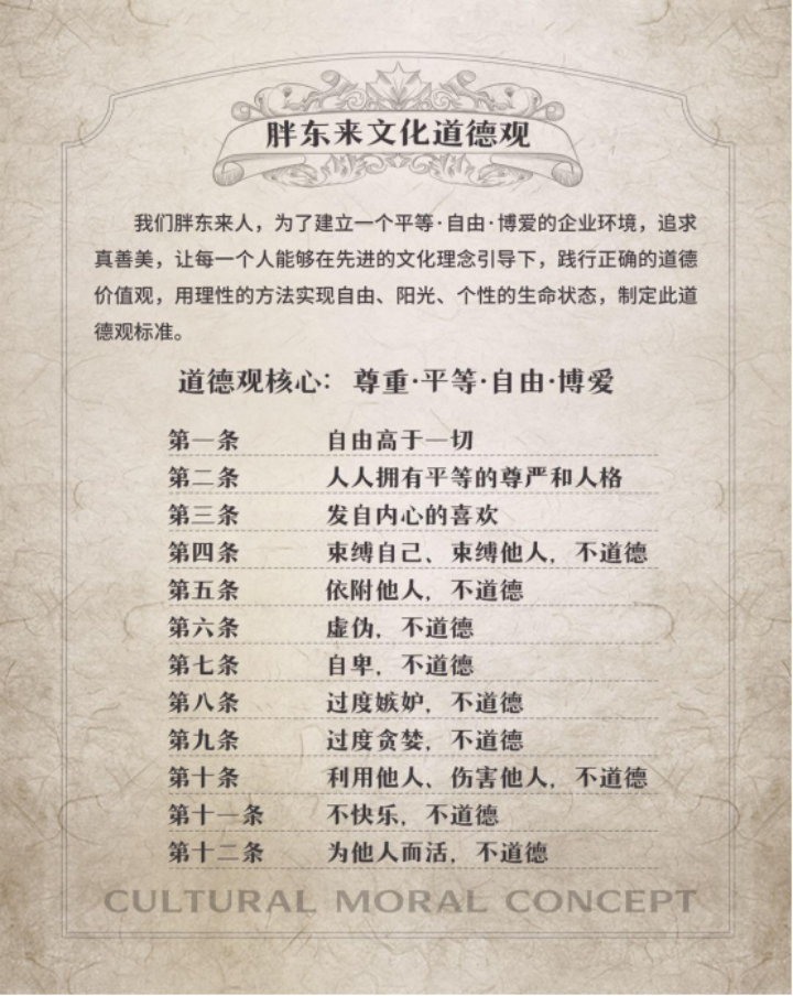 去年我給我們團(tuán)隊(duì)分享的時(shí)候也是,文化上要知行合一,體制上要科學(xué)人性,制度上要民主公平,生活上要關(guān)注關(guān)愛,工作上要給予幫助,態(tài)度上要匠心嚴(yán)謹(jǐn),紀(jì)律上必須嚴(yán)明,善惡上必須分明。也是胖東來文化“揚(yáng)善·戒惡”。我們要通過這一個(gè)企業(yè),通過這個(gè)載體平臺(tái)去成就更多的生命。