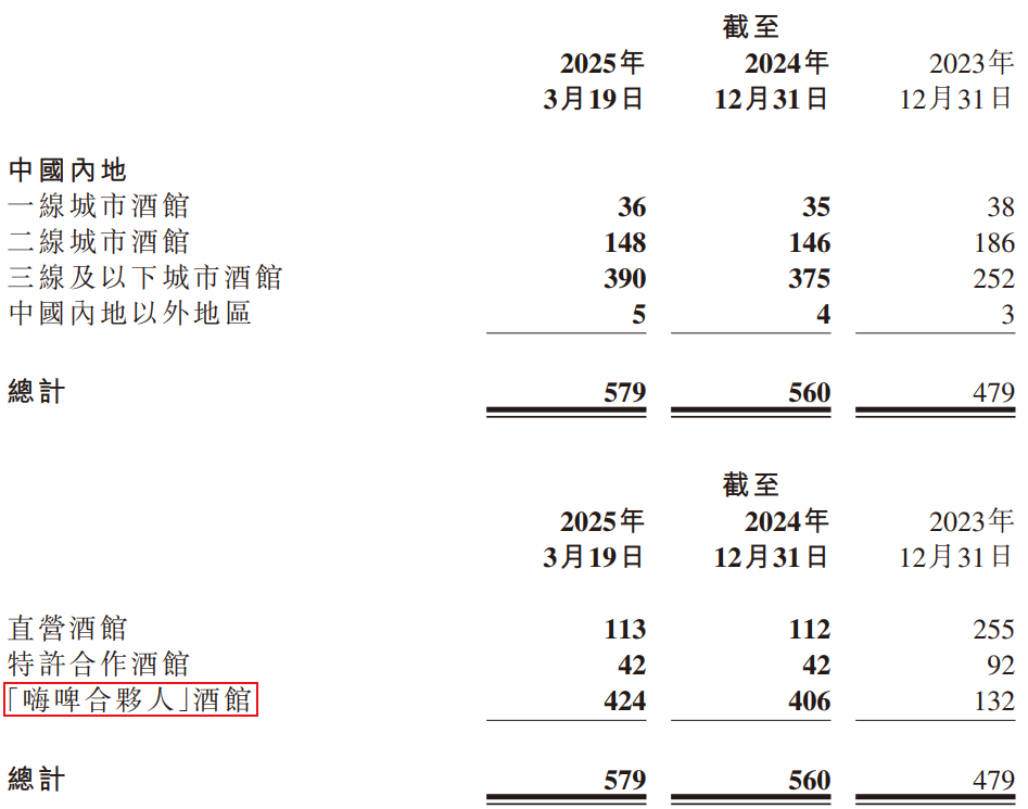 截至去年末,海倫司直營酒館112家、特許合作酒館42家,同比分別減少143家、50家。唯有嗨啤合伙人酒館增加274家,為406家。其直營、特許及合伙人酒館合計560家,同比增家81家。截至2025年3月19日,公司酒館門店總規(guī)模為579家。
