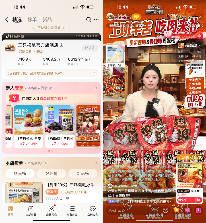 2024年,其抖音渠道收入同比暴漲180%,賈乃亮單場直播破億。除了打造“19.9元10包夏威夷果”等現(xiàn)象級爆品,三只松鼠真正的殺手锏藏在細節(jié)