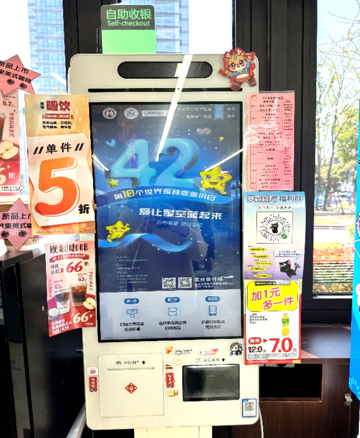 每年的4月2日是“世界孤獨(dú)癥意識日”,羅森以遍布江浙滬2700余家的門店作為公益基站,通過POS機(jī)、自助收銀機(jī)屏幕滾動播放“世界孤獨(dú)癥意識日”主題視頻與倡導(dǎo)海報(bào),用“藍(lán)色行動”打破認(rèn)知壁壘,呼吁公眾傾聽、理解、共情和陪伴,為孤獨(dú)癥群體搭建融入社會的橋梁。