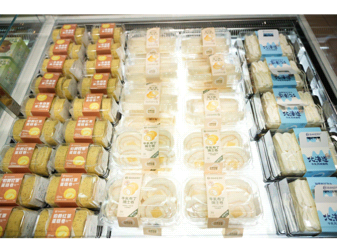 熟食烘焙方面,提供多款網(wǎng)紅爆款與老上海情懷商品。熟食區(qū)推出“胖東來(lái)同款”小紅腸,秘制牛肉條、韓式炸雞、烤鴨,并全新引入了紫燕百味雞。明檔廚房,顧客可以看見(jiàn)員工操作行為,營(yíng)造了更為放心的消費(fèi)現(xiàn)場(chǎng)。