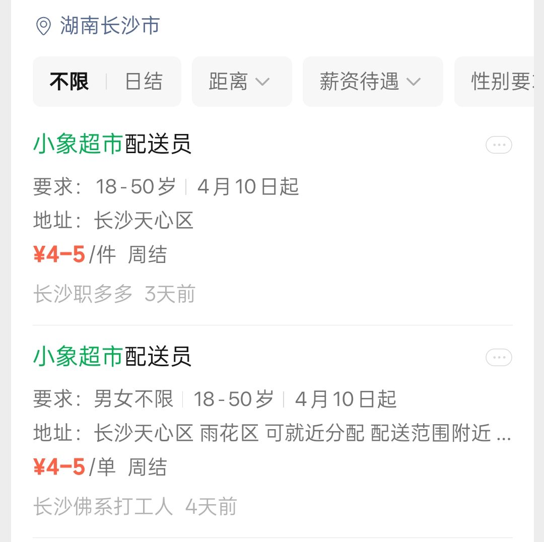 小象超市前置倉即將開城長沙,目前正在招聘配送員
