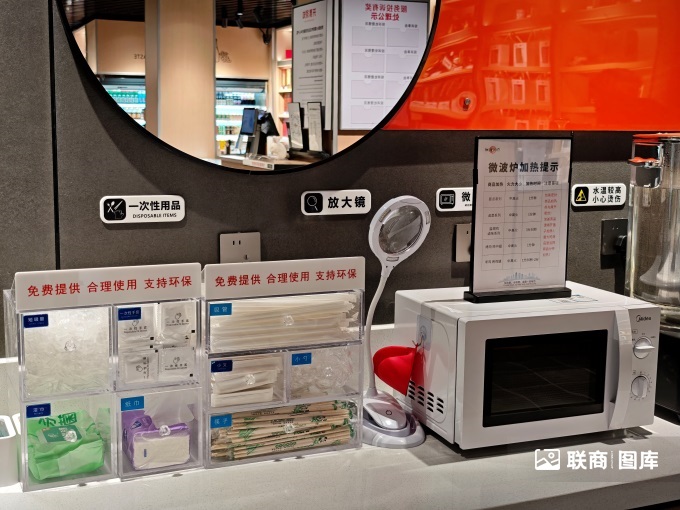 顧客服務(wù)方面,門店增加了便民服務(wù)區(qū),洗手臺、紙巾、烘手器、護手霜、直飲水、一次性紙杯、公平秤、微波爐、茶飲、糖果等便民設(shè)施一應俱全。此外,針對特殊需求顧客推出寵物寄存柜等服務(wù),從細節(jié)處為顧客考慮。