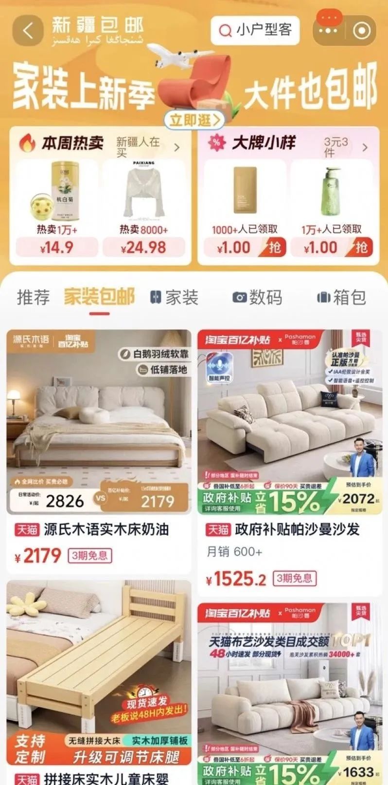 如此看來(lái),淘寶將大件家裝商品納入新疆包郵服務(wù),也就不奇怪了。