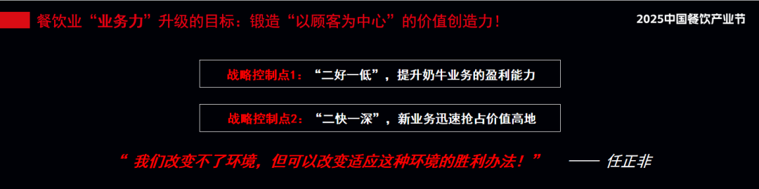 二是倒逼我們變革。過去大部分餐飲老板都是靠運(yùn)氣賺錢,但這條路現(xiàn)在已經(jīng)走不通了。任正非曾說過:“過去的成功,不能成為未來成功正確的向?qū)А。餐企需要自我蛻變,革自己的命才能活下去?nbsp;