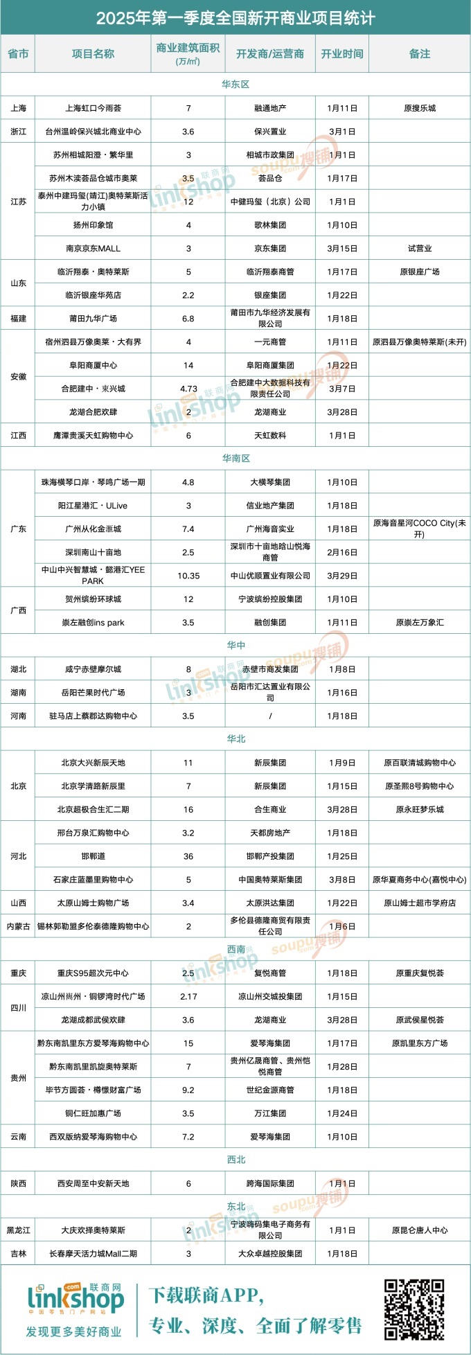 附:2025年第一季度全國新開商業(yè)項目統(tǒng)計表