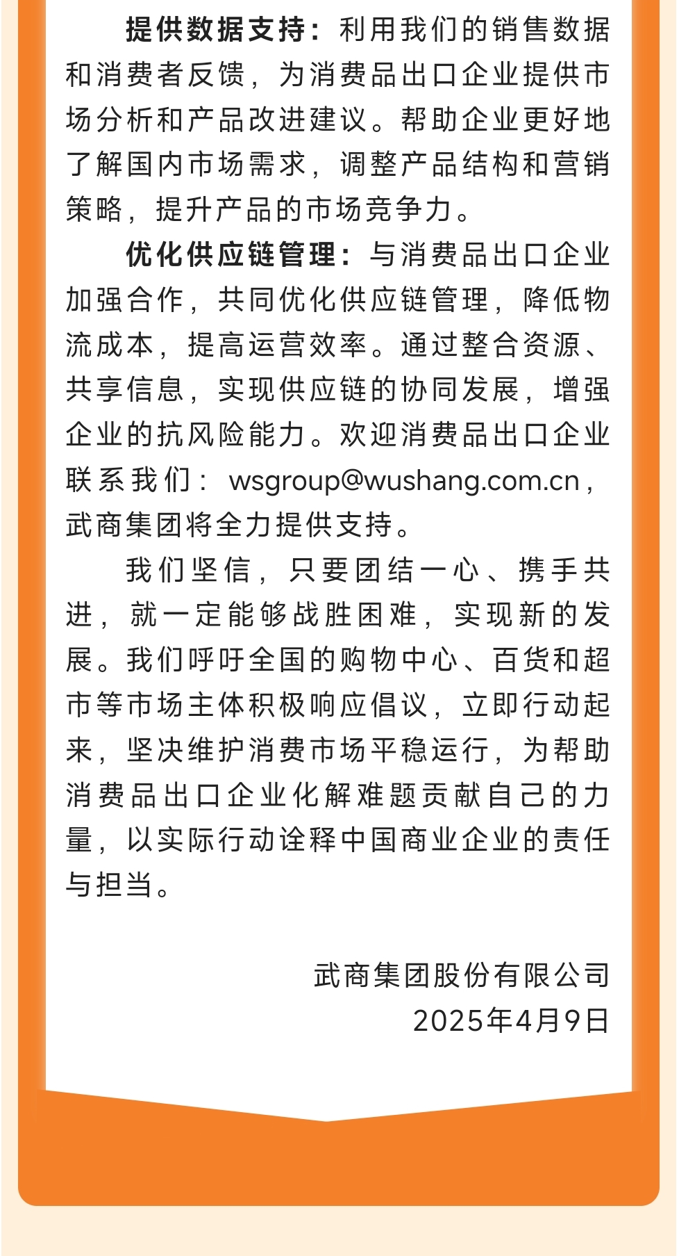 武商集團(tuán)發(fā)倡議書,幫助消費(fèi)品出口企業(yè)拓展國內(nèi)市場