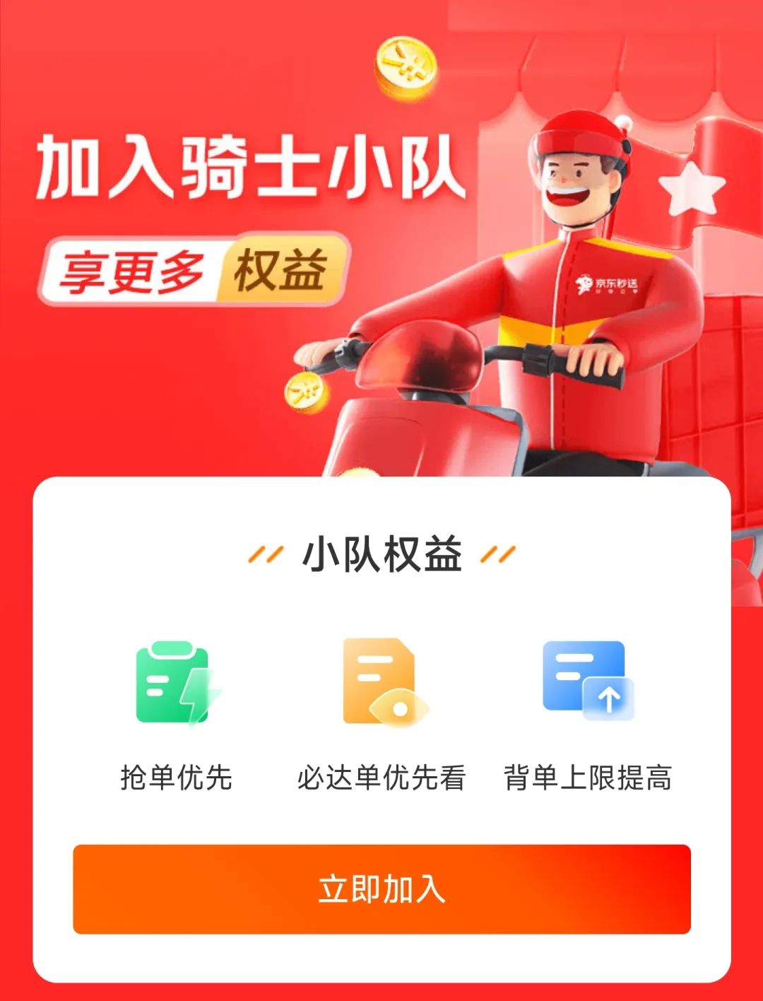 廣東省某市達達小隊隊長柳森告訴驚蟄研究所,目前想要成為京東全職騎手,需要先申請加入達達騎士小隊,“平時多跑單,然后等京東邀請入職”。而對比工作時間更靈活的眾包騎手,騎士小隊每天需要在特定的排班時段內工作,有固定的任務量,還需要接受平臺的績效考核。某種程度上來說,眾包騎手與平臺之間屬于合作關系,而騎士小隊則從屬于平臺的管理架構。因此,在理論上,從騎士小隊中“選拔”人才成為全職騎手也有一定的合理性。