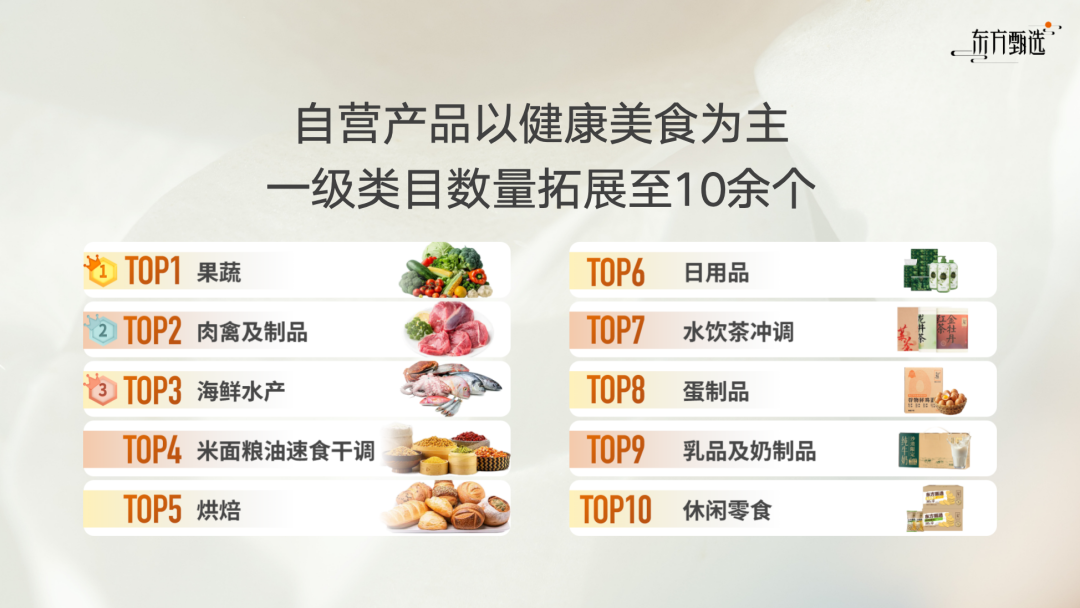 東方甄選公布的自營商品一級類目