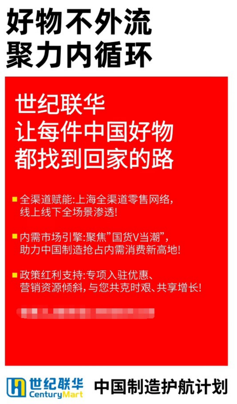 4月9日,上海世紀聯(lián)華正式宣布啟動《中國制造護航計劃》,推行“好物不外流”,聚力內(nèi)循環(huán),讓每件中國好物都能找到屬于自己的市場。