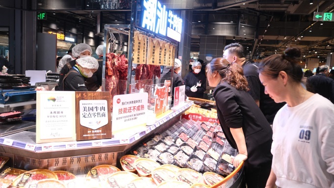 走進(jìn)調(diào)改后的賣場(chǎng),生鮮區(qū)成為最熱鬧的“流量中心”。貨架上,慢養(yǎng)300天的土豬吸引了不少消費(fèi)者駐足,其肉質(zhì)緊實(shí)、肌理分明,專供福建人鐘愛的撈化湯底!拔覀兙芙^科技與狠活,只做清洗處理,回歸食材本味!遍T店負(fù)責(zé)人介紹。一旁的潮汕牛肉柜臺(tái)前,當(dāng)天屠宰、精切現(xiàn)售的牛肉鮮紅透亮,消費(fèi)者陳女士感嘆:“以前買牛肉得趕早市,現(xiàn)在超市的不僅新鮮,還能現(xiàn)場(chǎng)代煎牛排!”