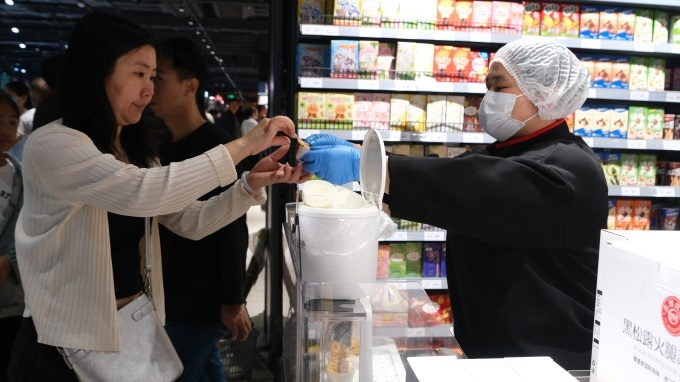 新潮與獵奇元素同樣搶眼。每周末的甘魚分割秀成為年輕人打卡熱點(diǎn),開業(yè)當(dāng)天正值周末,專業(yè)廚師現(xiàn)場(chǎng)解剖近百斤的龍躉魚,晶瑩剔透的刺身拼盤供顧客試吃。海鮮廚房也讓消費(fèi)者感受到了不一樣的體驗(yàn),鮮活的帝王蟹,可選擇清蒸、刺身或火鍋加工,搭配楊枝甘露、椰奶凍即時(shí)享用。“最頭疼的就是處理魚類,現(xiàn)在超市能代加工,還能直接堂食!”95后上班族小林笑道。
