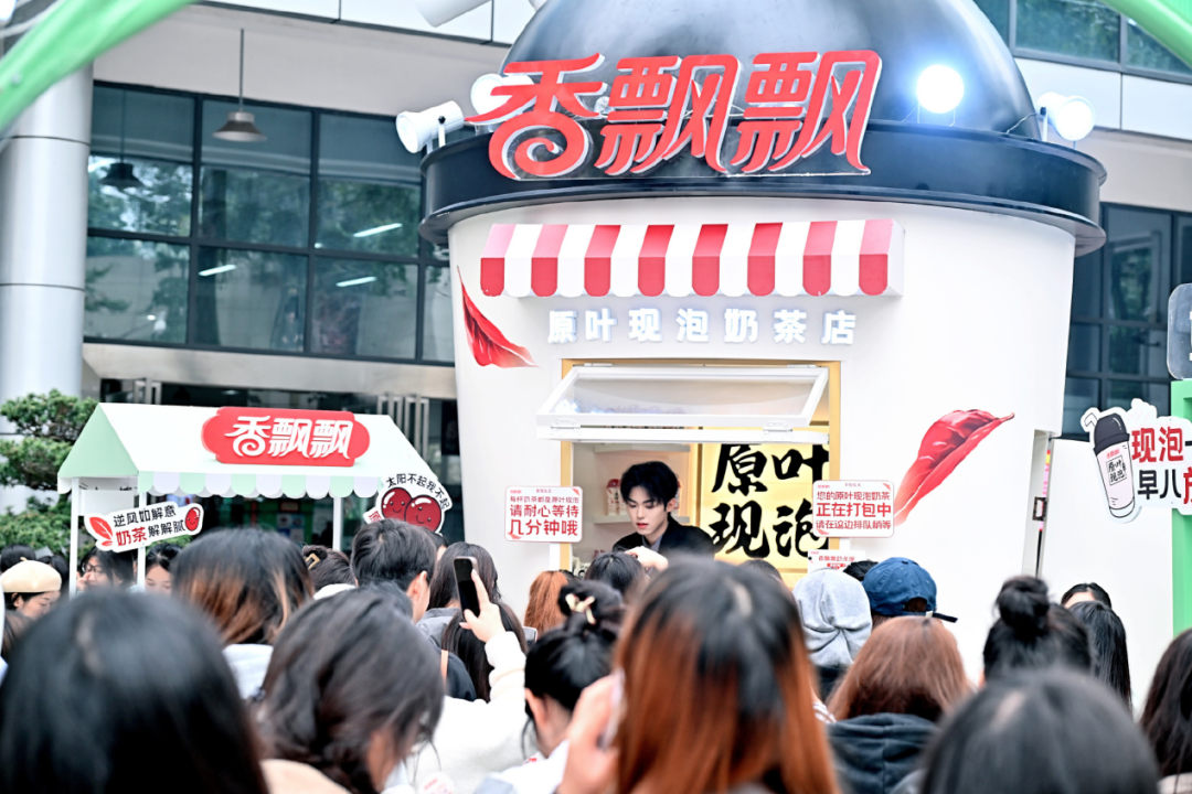 去年12月、今年3月,香飄飄分別在杭州西湖湖濱銀泰步行街、成都春熙路舉辦“地球首家奶茶店”“地球首家果茶店”線下體驗(yàn)活動(dòng),引發(fā)了大量關(guān)注。