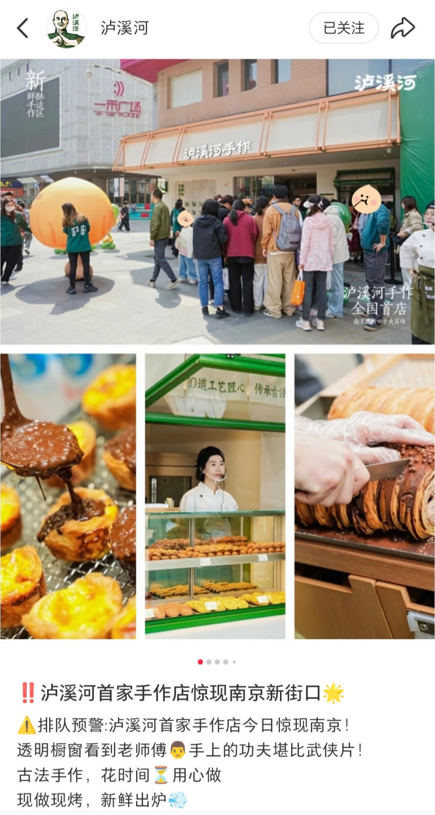據(jù)官方發(fā)布信息顯示,瀘溪河手作店位于南京新街口,相較于瀘溪河的常規(guī)門店,新開的這家手作店,有很多不一樣。其中最大的差異,在于手作店的生產(chǎn)模式完全發(fā)生了變化,全線產(chǎn)品皆現(xiàn)烤。