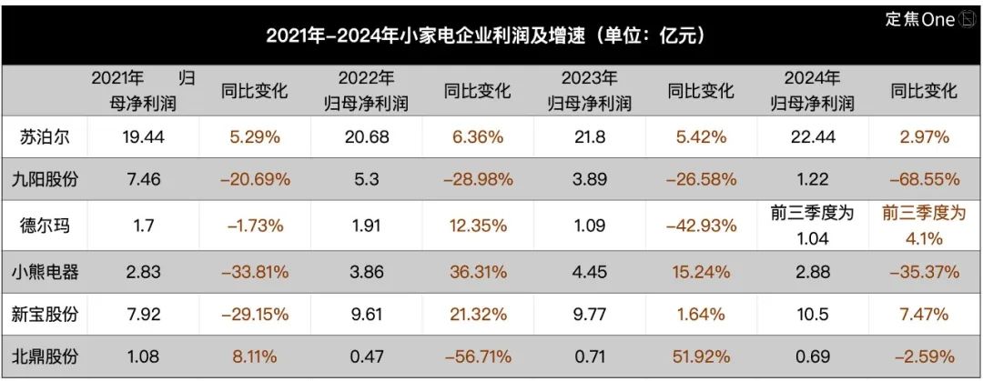 「定焦One」選取了六家小家電行業(yè)的上市公司作為代表,通過(guò)它們2021年-2024年的業(yè)績(jī),觀察這一行業(yè)的走勢(shì)。