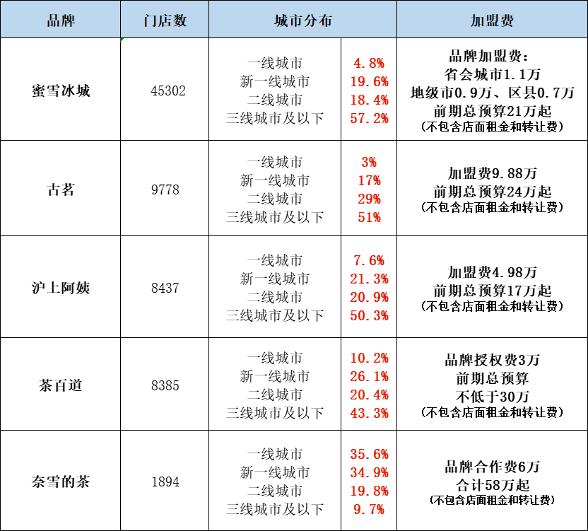 還是以最賺錢的蜜雪冰城來看,2024年財(cái)報(bào)顯示,其四線及以下城市門店占比達(dá)57.4%,但同期加盟商退出數(shù)量超過1100家,部分鄉(xiāng)鎮(zhèn)門店日均銷售額不足200元;一位湖北加盟商透露,其門店周邊500米內(nèi)聚集了7家不同品牌的茶飲店,直接導(dǎo)致毛利率從60%驟降至30%。