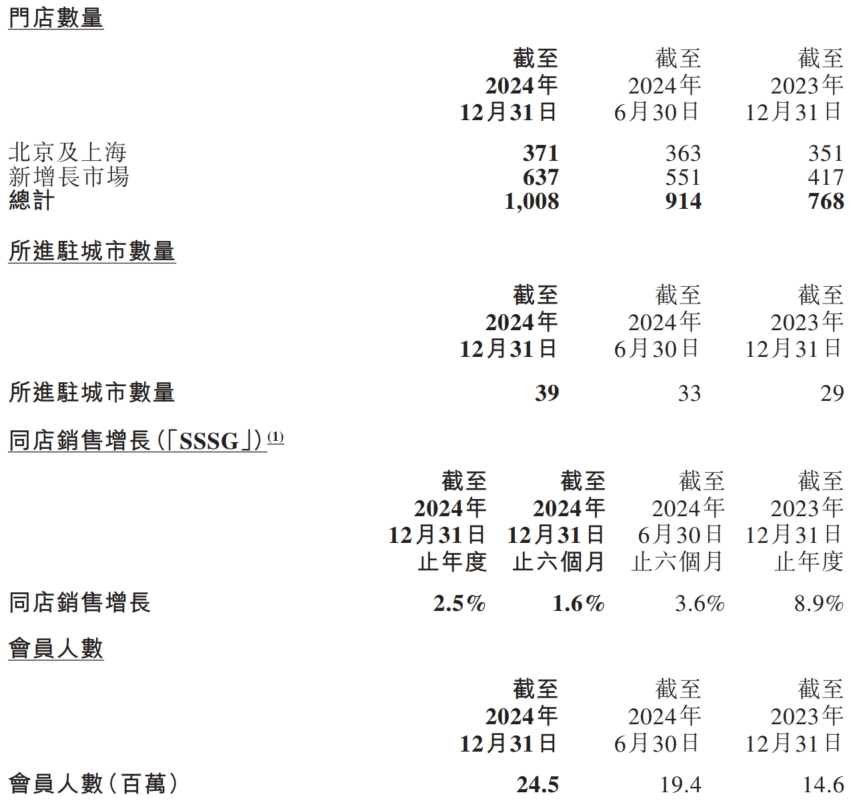 北京和上海作為成熟市場,門店數(shù)量達371家,2024財年雖僅凈增20家,但仍創(chuàng)造16.5億元收入,同比增長6.8%;