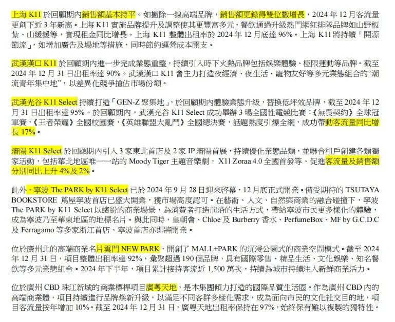 盡管面臨諸多挑戰(zhàn),恒隆的財(cái)報(bào)中也透露出一些積極的信號(hào)。與2019年相比,恒隆商場(chǎng)2024年奢侈品銷售額增長(zhǎng)近100%,頂級(jí)品牌銷售額增長(zhǎng)近200%。商場(chǎng)租出率也維持高水平,甚至有溫和增長(zhǎng),上海兩座恒隆、無(wú)錫、昆明等多個(gè)項(xiàng)目租出率達(dá)到98-99%,這在當(dāng)前市場(chǎng)環(huán)境下實(shí)屬不易。