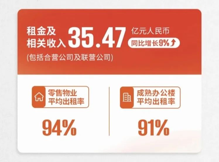 2024年瑞安房地產(chǎn)錄得收入81.73億元,同比下降16%;凈利潤(rùn)8.1億元,同比下降42%;股東應(yīng)占溢利1.8億元,同比下降78%。租金在整體收入中的占比提高,全年租金及相關(guān)收入(含合營(yíng)及聯(lián)營(yíng)公司)同比增長(zhǎng)9%至35.47億元;毛利率更是顯著提升12%,達(dá)到64%。零售物業(yè)的銷售增長(zhǎng)8%、客流增長(zhǎng)12%,出租率也穩(wěn)定在94%左右。