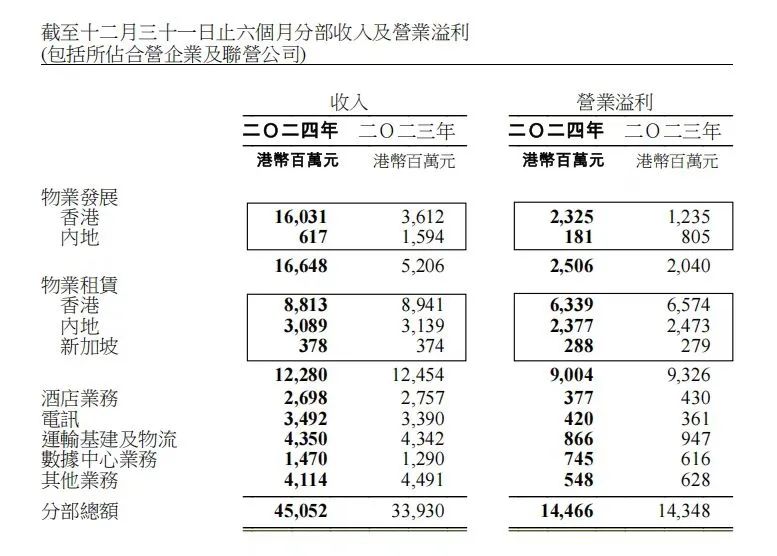 新鴻基地產(chǎn)發(fā)布2024/25財(cái)年半年度業(yè)績(jī)報(bào)告,2024年下半年取得總收入399.33億港元,較去年同期增長(zhǎng)了45%。營(yíng)業(yè)溢利較去年同期增長(zhǎng)了10.5%。
