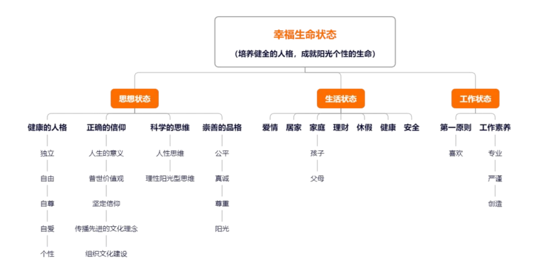 胖東來(lái)的企業(yè)目標(biāo)在人的層面上,在于培養(yǎng)健全人格,成就陽(yáng)光個(gè)性的生命狀態(tài),這是企業(yè)學(xué)習(xí)胖東來(lái)非常關(guān)鍵的一點(diǎn),下圖是幸福生命狀態(tài)的詳解: