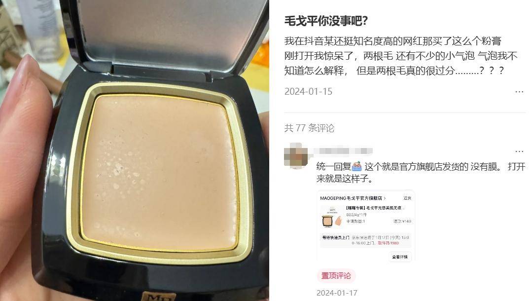 還有網(wǎng)友表示毛戈平的產(chǎn)品效果一般、性價(jià)比不高;甚至出現(xiàn)了一些“買完后悔”“避雷毛戈平”的帖子。