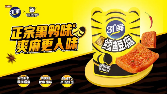此前,周黑鴨就曾聯(lián)名鹽津鋪子推出一款「31°鮮」虎皮鱈魚豆腐。據(jù)了解,該產(chǎn)品使用正宗周黑鴨風(fēng)味鹵料,口感甜辣爽麻。品牌希望打造口味堪比現(xiàn)鹵,回味無窮的產(chǎn)品體驗。
