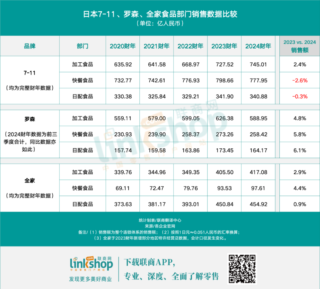聯(lián)商網(wǎng)統(tǒng)計(jì)發(fā)現(xiàn),7-11“快餐食品”和“日配食品”兩大核心板塊雖貢獻(xiàn)了約40%的商品銷售額,但增速不及市場(chǎng)水平,甚至出現(xiàn)負(fù)增長(zhǎng)。而羅森和全家則保持穩(wěn)步上升。這一現(xiàn)象深刻反映了7-11在商品策略上的戰(zhàn)略性失誤,其市場(chǎng)定位與消費(fèi)者期待之間出現(xiàn)了“代溝”。