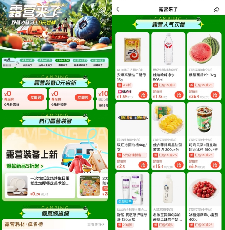 為了更好激活春日戶外消費(fèi)活力,據(jù)悉,即日起至4月20日,消費(fèi)者上餓了么搜“露營(yíng)季”即有機(jī)會(huì)獲得餓了么每天提供的萬(wàn)張0元嘗鮮免單券,優(yōu)惠覆蓋了包含水果、零食、戶外裝備等在內(nèi)的諸多品類。