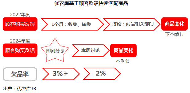 數(shù)字化應(yīng)用方面,優(yōu)衣庫強化以顧客為起點的企劃、生產(chǎn)、物流、店鋪、總部的“End to End” 一體化管理, 推進全領(lǐng)域數(shù)字化變革。店鋪業(yè)務(wù)變革的核心是,保持與顧客的直接聯(lián)系,深入掌握顧客的需求變化。從可視化角度分辨,一是顧客喜歡的商品總是很齊全;二是確保顧客想買的商品在SKU水平上不缺貨、隨時可得;三是顧客可以簡單、便利、即時地買到喜歡的商品。在提高業(yè)務(wù)效率同時,實現(xiàn)店鋪和電子商務(wù)一體化、顧客最優(yōu)先的目標(biāo)。優(yōu)衣庫母公司迅銷集團CIO 丹原崇宏解讀道,所謂一體化的具體指標(biāo),主要體現(xiàn)在店鋪和電子商務(wù)的庫存實現(xiàn)一元化管理。