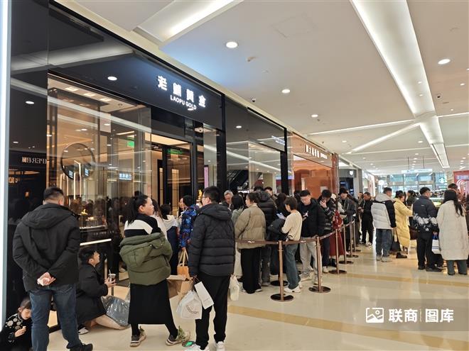 圖為顧客在杭州萬象城排隊(duì)購買老鋪黃金