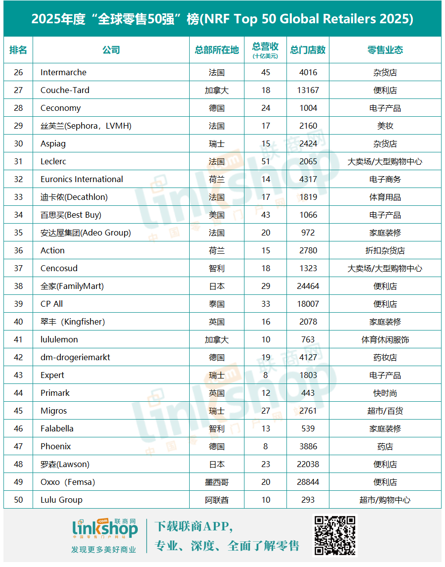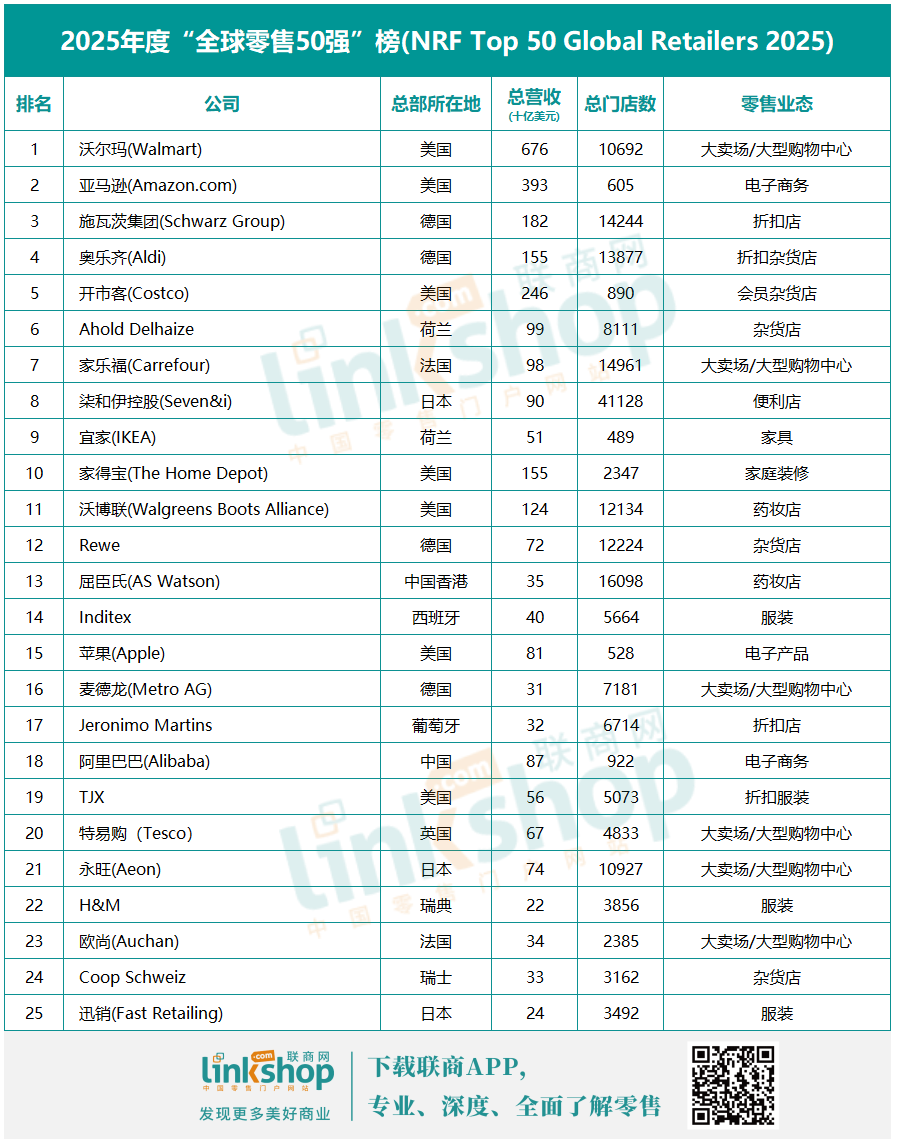 2025年全球零售50強(qiáng)出爐,中國(guó)有哪些上榜?