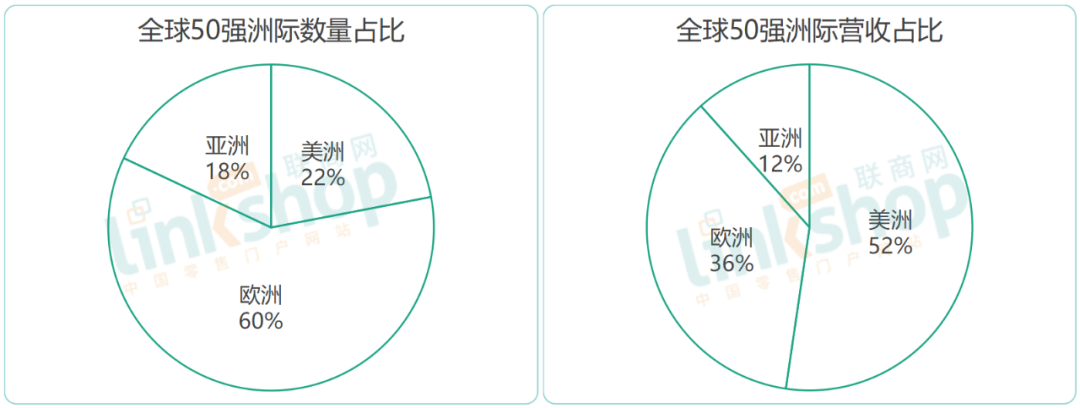 50強(qiáng)榜單中,歐洲企業(yè)分布數(shù)最多,有30家;但從總營(yíng)收看,美洲最高,主要是美國(guó)9家企業(yè)比較強(qiáng)大,營(yíng)收在總榜單中占比近51%;亞洲日本有5大企業(yè)入圍,4家排位都有所上升,迅銷(xiāo)集團(tuán)(Fast Retailing)更是上升了7位,也在一定程度上體現(xiàn)了日本零售業(yè)的全球?qū)嵙Α?o:p>
