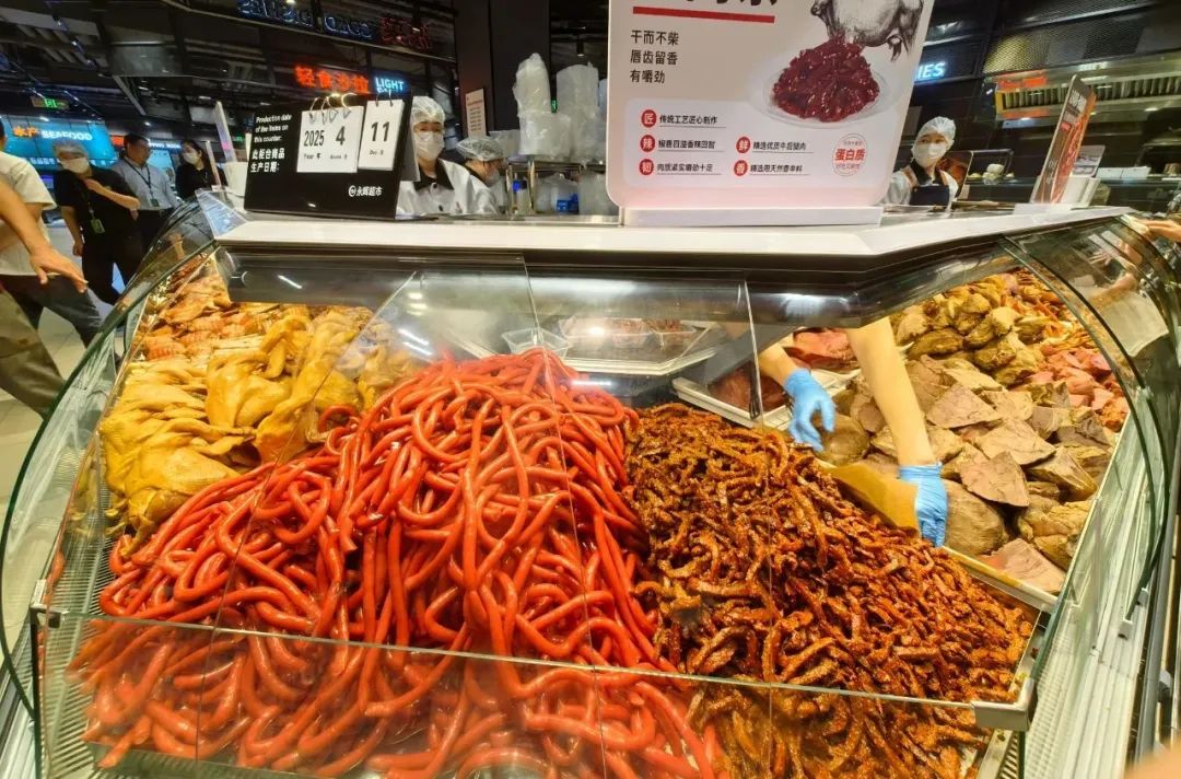 最受歡迎的區(qū)域之一還有煙火氣與品質(zhì)感交織的半開放式的熟食區(qū)。以現(xiàn)制現(xiàn)售、地域風(fēng)味與網(wǎng)紅爆款為核心亮點(diǎn),構(gòu)建起了“即買即食+家庭餐桌+社交分享”的多元場景。