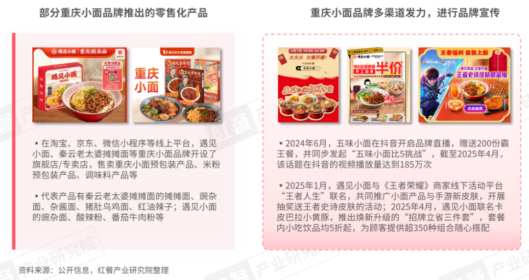 當(dāng)前,不少重慶小面品牌還積極拓展銷售渠道,不僅推出零售化產(chǎn)品,還在線上線下渠道同時發(fā)力,以提升品牌曝光度。