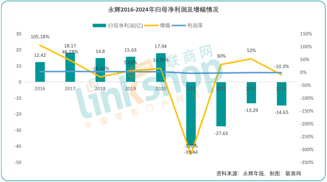 2024年全年,永輝超市實(shí)現(xiàn)營收675.74億元,同比下降14.07%;歸母凈虧損14.65億元,虧損同比增加1.36億元,擴(kuò)大10.26%;2025年一季度實(shí)現(xiàn)營收174.79億元,同比下降19.32%;凈利潤1.48億元,同比下降79.96%,凈利潤率0.85%。