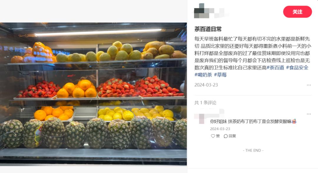 被連續(xù)曝光衛(wèi)生隱患后,茶百道加大了對(duì)門(mén)店管控力度!叭そ馍虡I(yè)”注意到,時(shí)常有茶百道店員在社媒平臺(tái)上吐槽督導(dǎo)巡查嚴(yán)格,“衛(wèi)生標(biāo)準(zhǔn)比自己家里還高”。然而,再?lài)?yán)格的巡檢和督查也很難將茶飲的衛(wèi)生隱患完全消除。