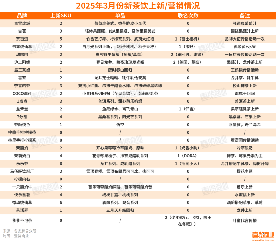 3月的新茶飲市場,聯(lián)名營銷動作整體偏少,品牌更傾向于獨立上新。