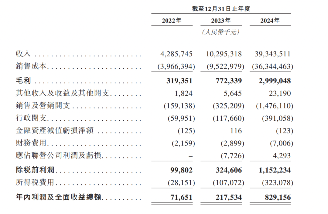 根據(jù)招股書顯示,鳴鳴很忙2024年門店銷售額為555億元,營收為393億元,毛利約30億,凈利潤為9億元。
