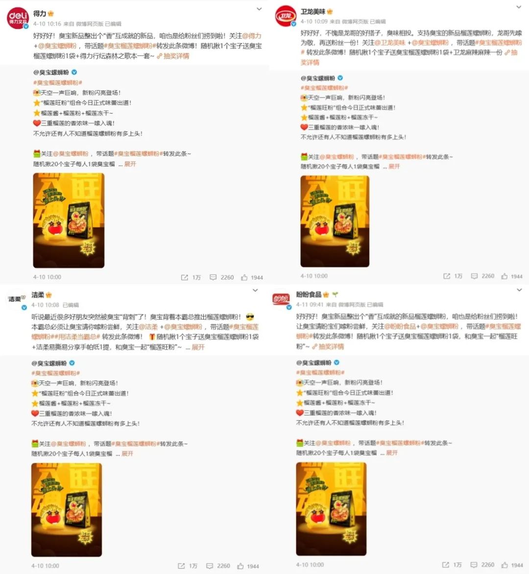 而這一切并沒有消耗過多的市場預(yù)算,歸根結(jié)底,最有效的媒介就是三重榴蓮螺螄粉新品本身。
