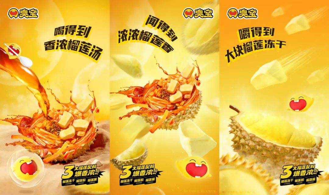 而最近,我們就發(fā)現(xiàn)了這么一款新奇產(chǎn)品:臭寶剛剛上新的“三重榴蓮螺螄粉”。這無疑是近年來最具“挑戰(zhàn)性”的創(chuàng)新之一,它將傳統(tǒng)的螺螄粉與榴蓮的濃郁風(fēng)味結(jié)合,推出了一個全新的“臭上加臭”的奇特體驗(yàn),沖擊消費(fèi)者的味蕾邊界。