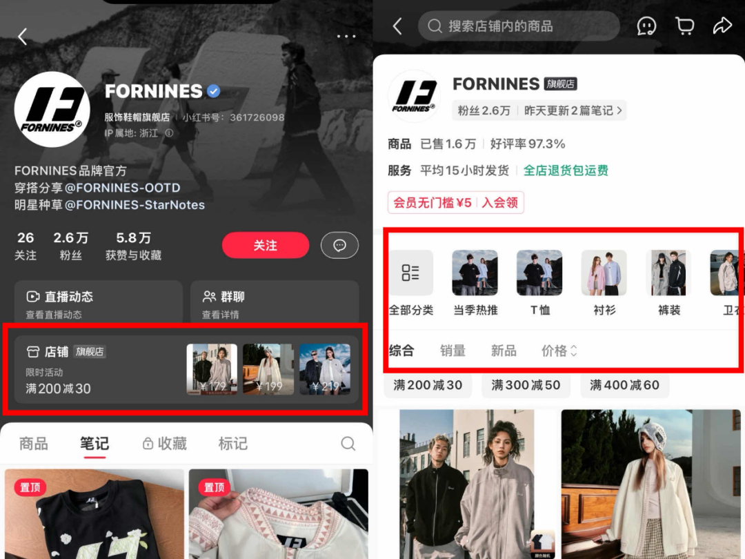 「電商在線」觀察到,小紅書商家的店鋪入口已調(diào)整至賬號主頁“關注/粉絲”下方這一黃金位置,還增加店內(nèi)促銷、優(yōu)惠券及新品信息等展示位。商家們將關鍵信息補齊并做好風格設計后,消費者將通過升級后更加直觀的入口展示縮短對品牌的認知路徑,快速定位店鋪風格和優(yōu)惠情況,形成決策。