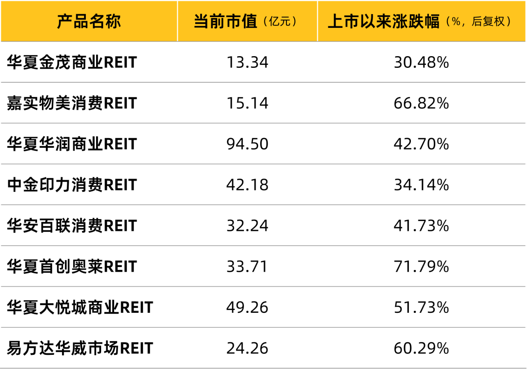 截至目前,已有8只消費REITs上市,覆蓋資產(chǎn)類型包括5只購物中心,以及奧特萊斯、社區(qū)商超、農(nóng)貿(mào)市場各1只。